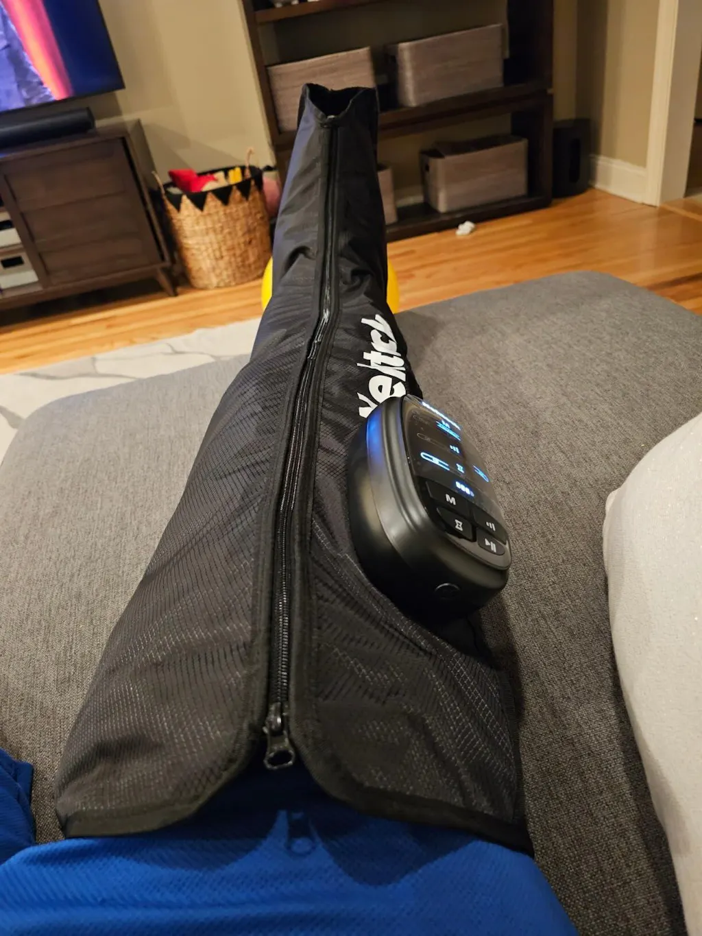 There are 3levels ofmassage strength selectable viathecontroller, pleaseselecttheintensity that fits you.You can also adjust the strength via changing the tightnessof theVelcro on the wraps.